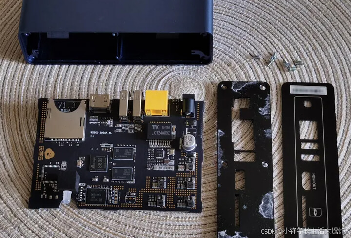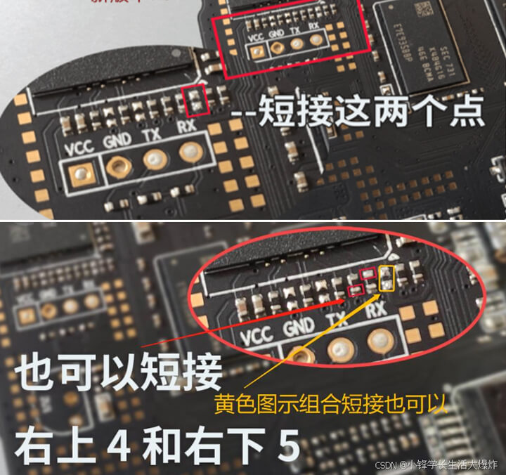 玩客云的线路板常见的有 1.1 和 1.3 两个版本,线路板正面有玩客云logo的就是新版,新版在 SD 卡槽附近也能够看明显的丝印,这两个版本需要短接的位置不同,需要仔细鉴别。